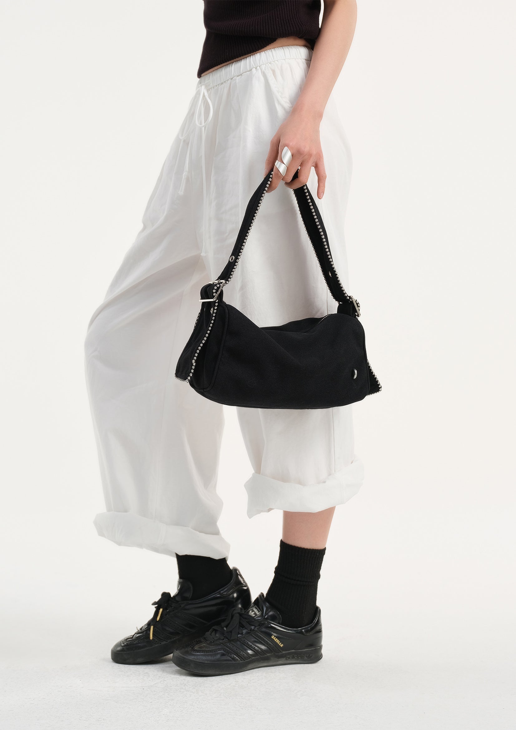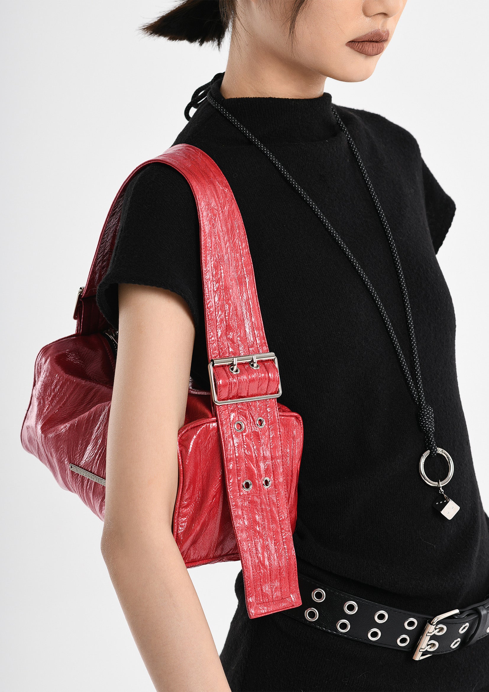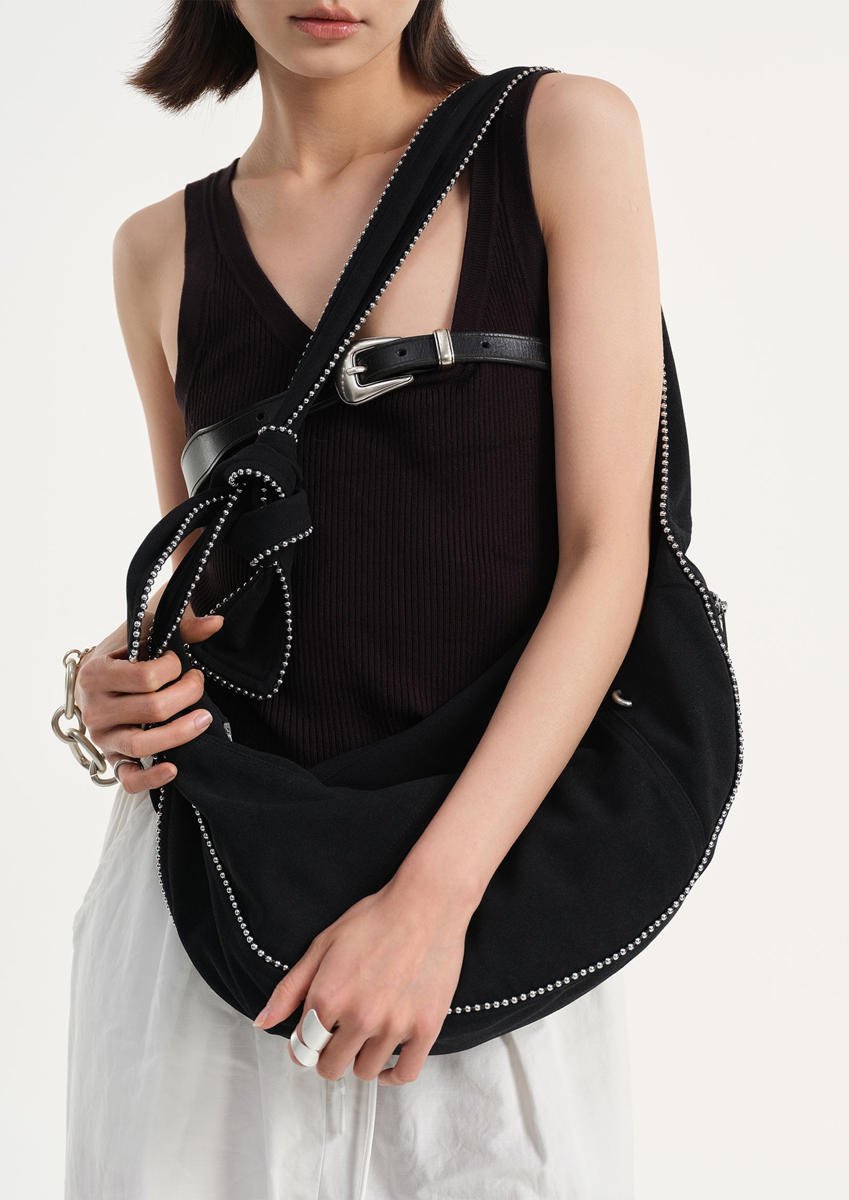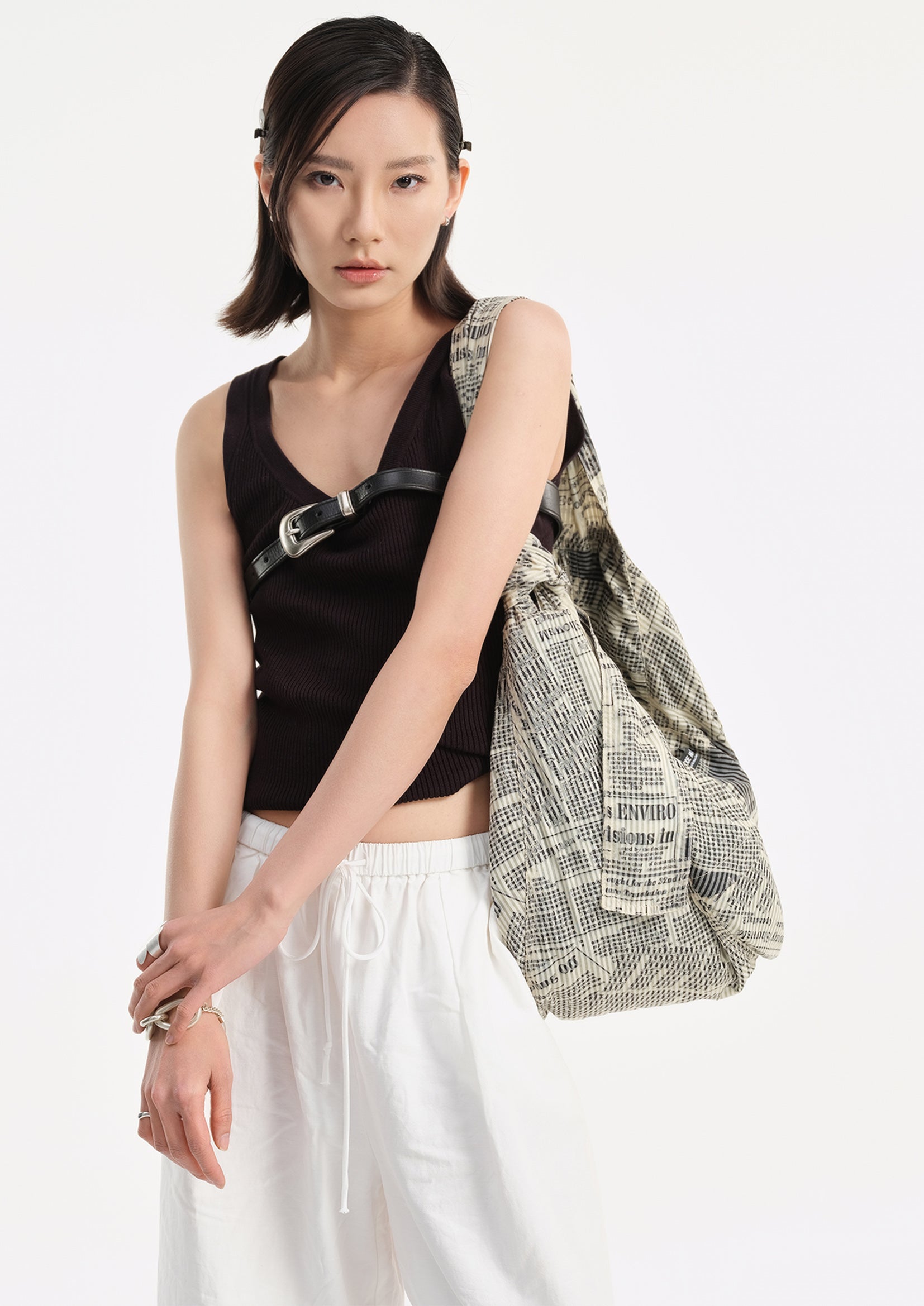 Devil girl polka dots crinkle stretch crop tee - off-white