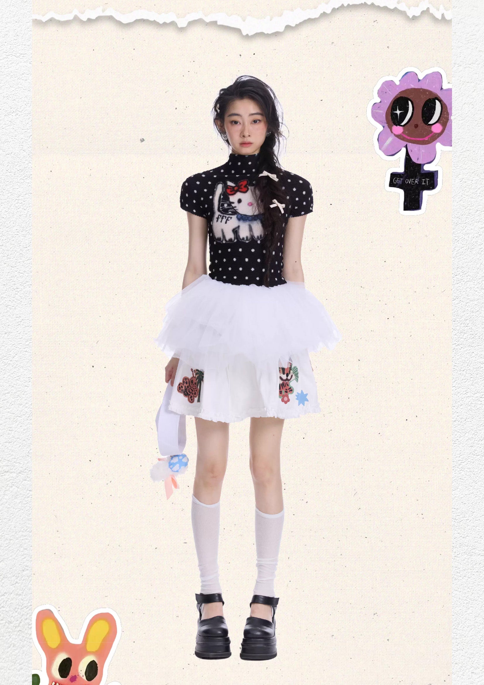 Denim print see-through mesh top