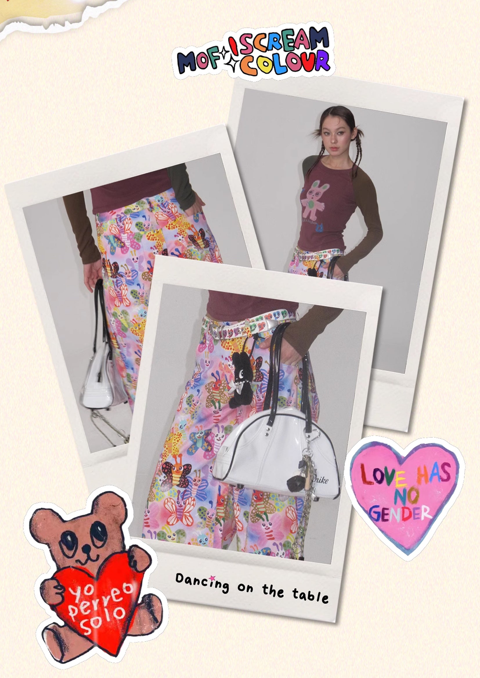 MOF ISCREAMCOLOUR is an artist derivative brand. It was jointly launched on Instagram by MOF (Museum of Friendship) Girls' Mall platform and the artist Humberto Cruz from California, USA, under the name @iscreamcolour. This is a brand-new, fun-filled clothing and lifestyle brand that aims to add a touch of fresh creamy colours to everyday life.