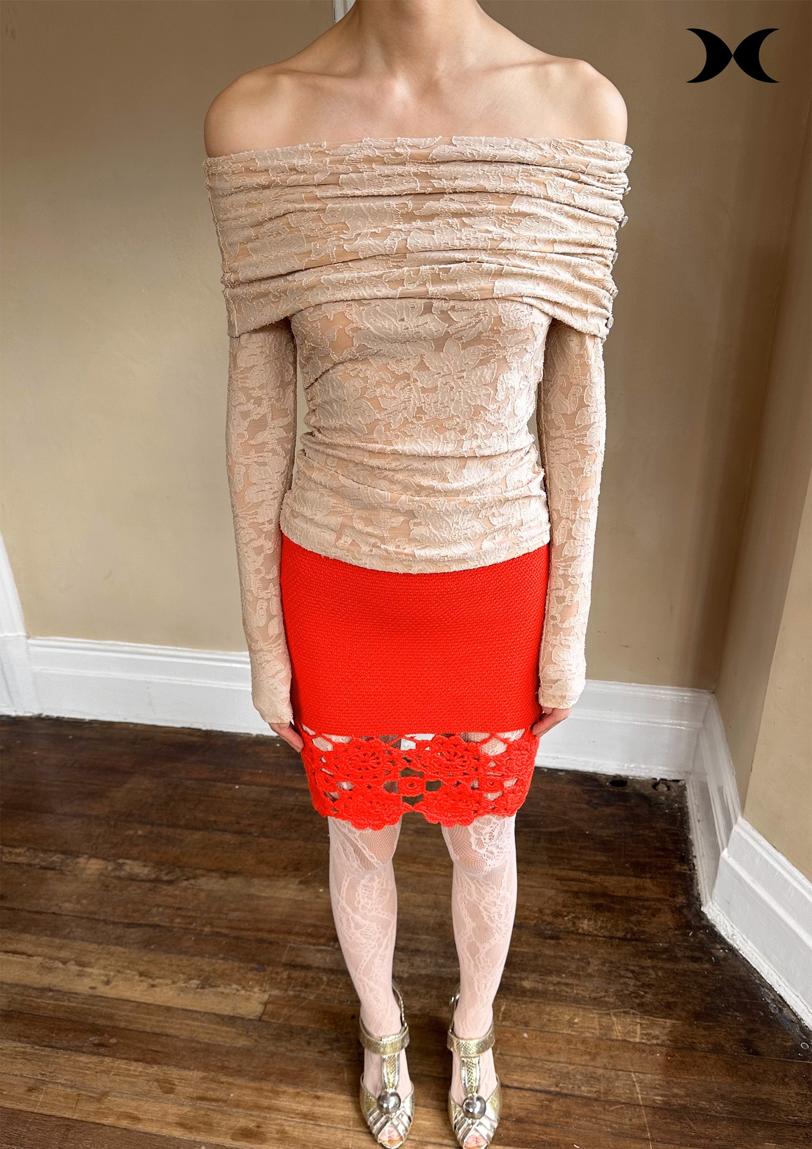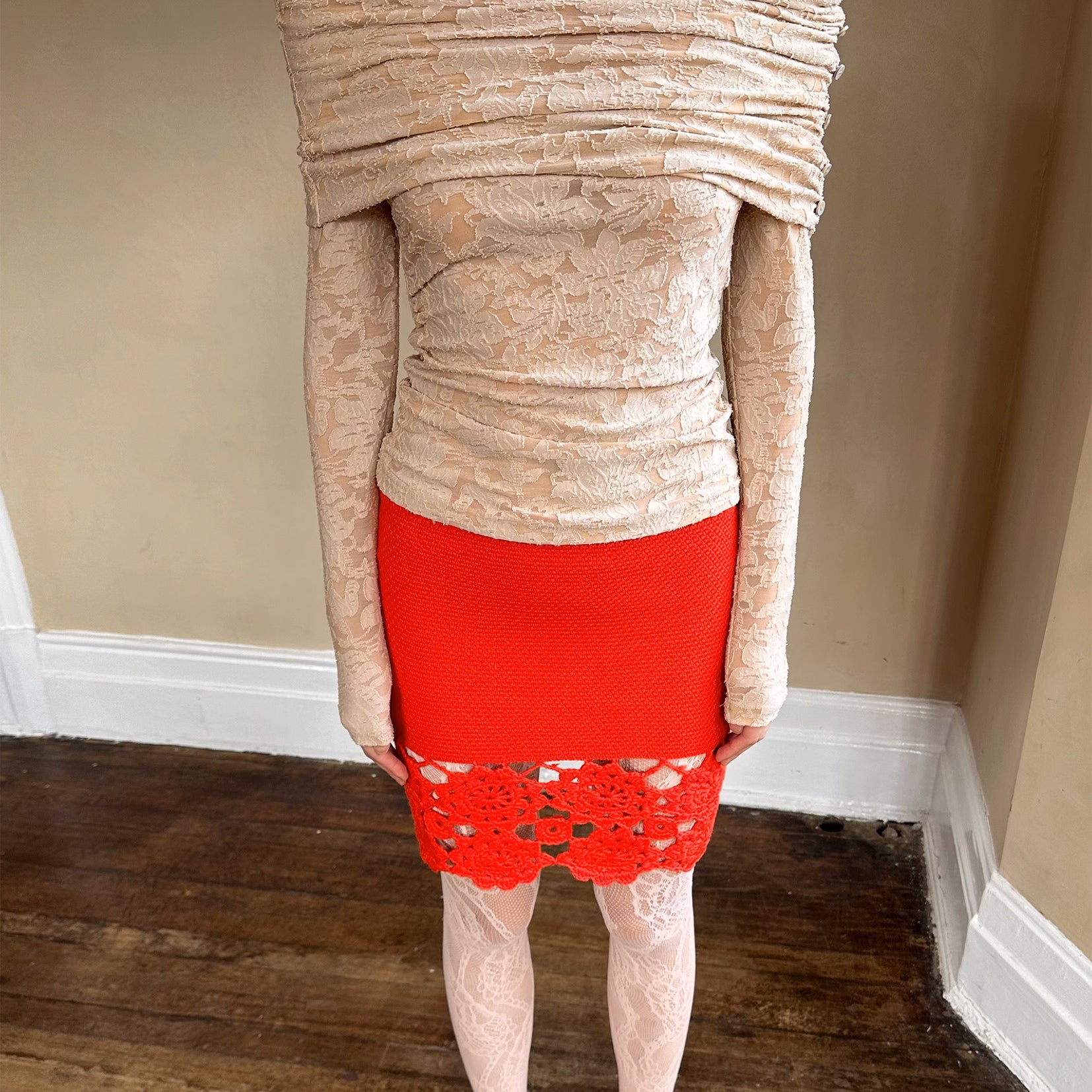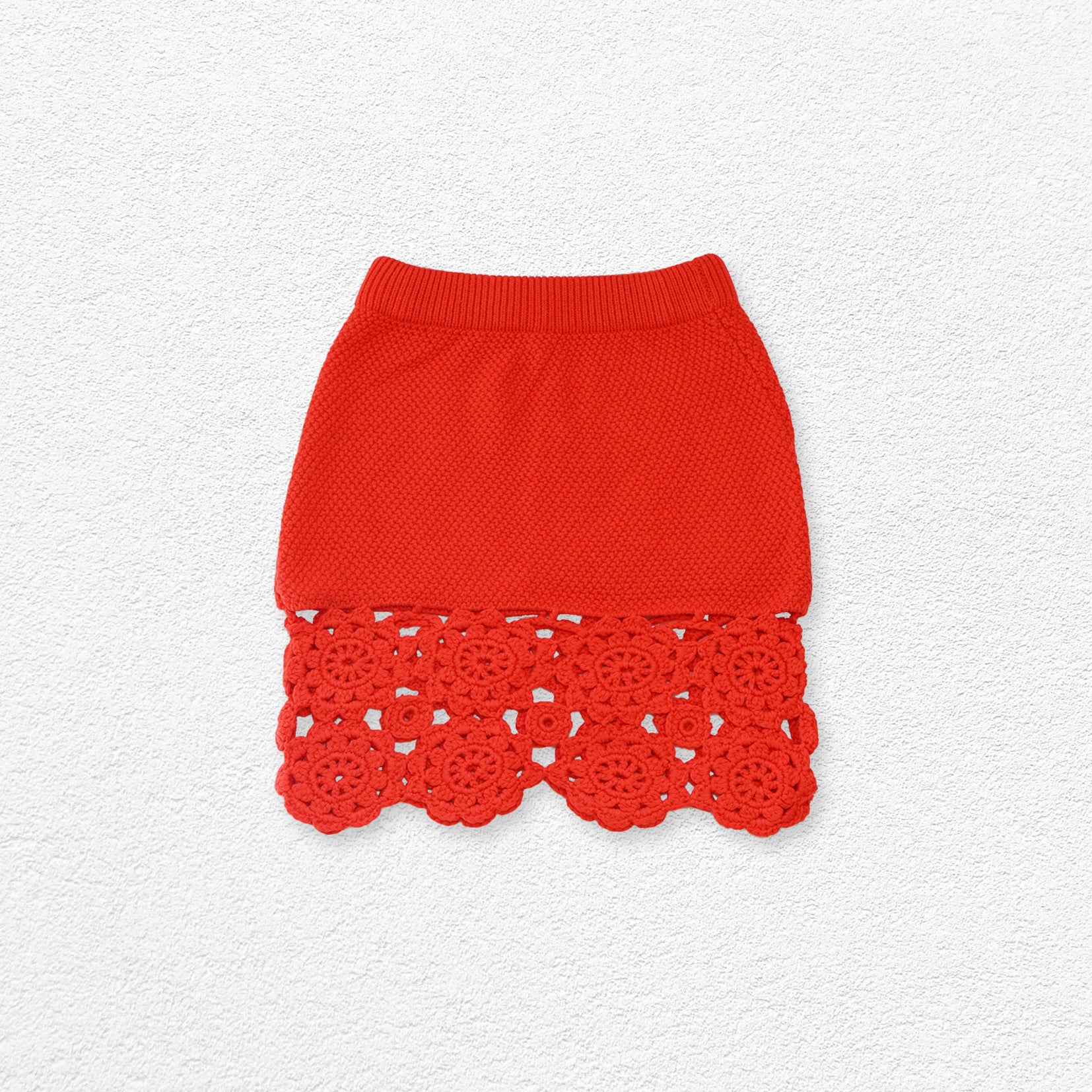 Floral crochet mini skirt - red